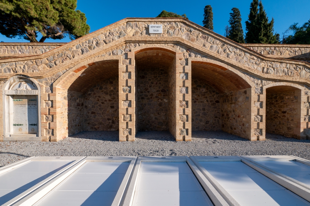 Intervencions estructurals de reparació, rehabilitació i consolidació de murs i vials a l'agrupació 13, Departaments 2 i 3, del Cementiri de Monjuïc